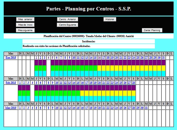 Para la Planificación por centros, el sistema le permite asignar diferentes colores a cada empleado, para posteriormente facilitar la elaboración del planning de una forma muy intuitiva.